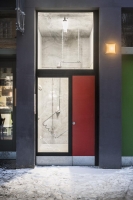 Ditte Gantriis and Rolf Nowotny’s collaborative piece for die raum plays with the inherent non-functionality of the space and its infinite potential as a room with no apparent rationale. Gantriis has created a series of crudely modeled clay noses mounted on the walls, which refer to clichéd characters like the witch, the snob, and the fool. The noses are blindly facing (and sniffing) Nowotny’s giant metal profile of a foot hanging from the ceiling in the center of the room. The metal foot is “energized” by an outlining power cord, that works as an electrical drawing in space referring to the energy produced by the human body.